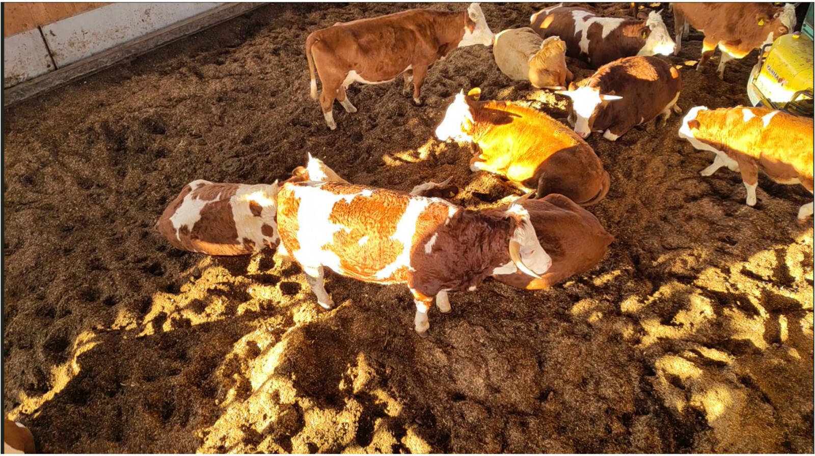- Moderner 3-Seit-OffenLaufstall mit großer Kompostfläche aus Hackschnitzel bietet den Kühen & Kälbchen & Ochsen die Möglichkeit sich frei zu bewegen/springen/hüpfen, zum Liegen, zum Fressen oder sich von den Massagebürsten verwöhnen zu lassen 💆♀️